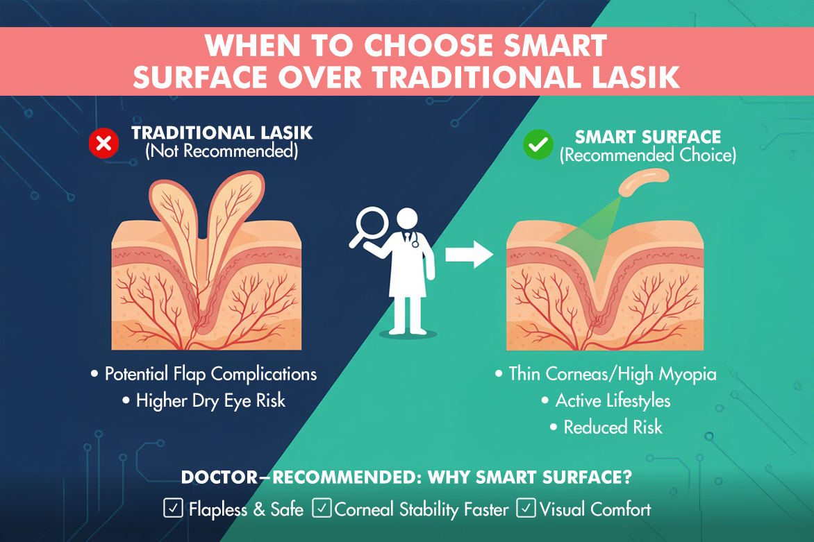 A detailed comparison for Smart SurfACE vs traditional LASIK helps clarify strengths and limitations. See the table below for a point-by-point analysis: